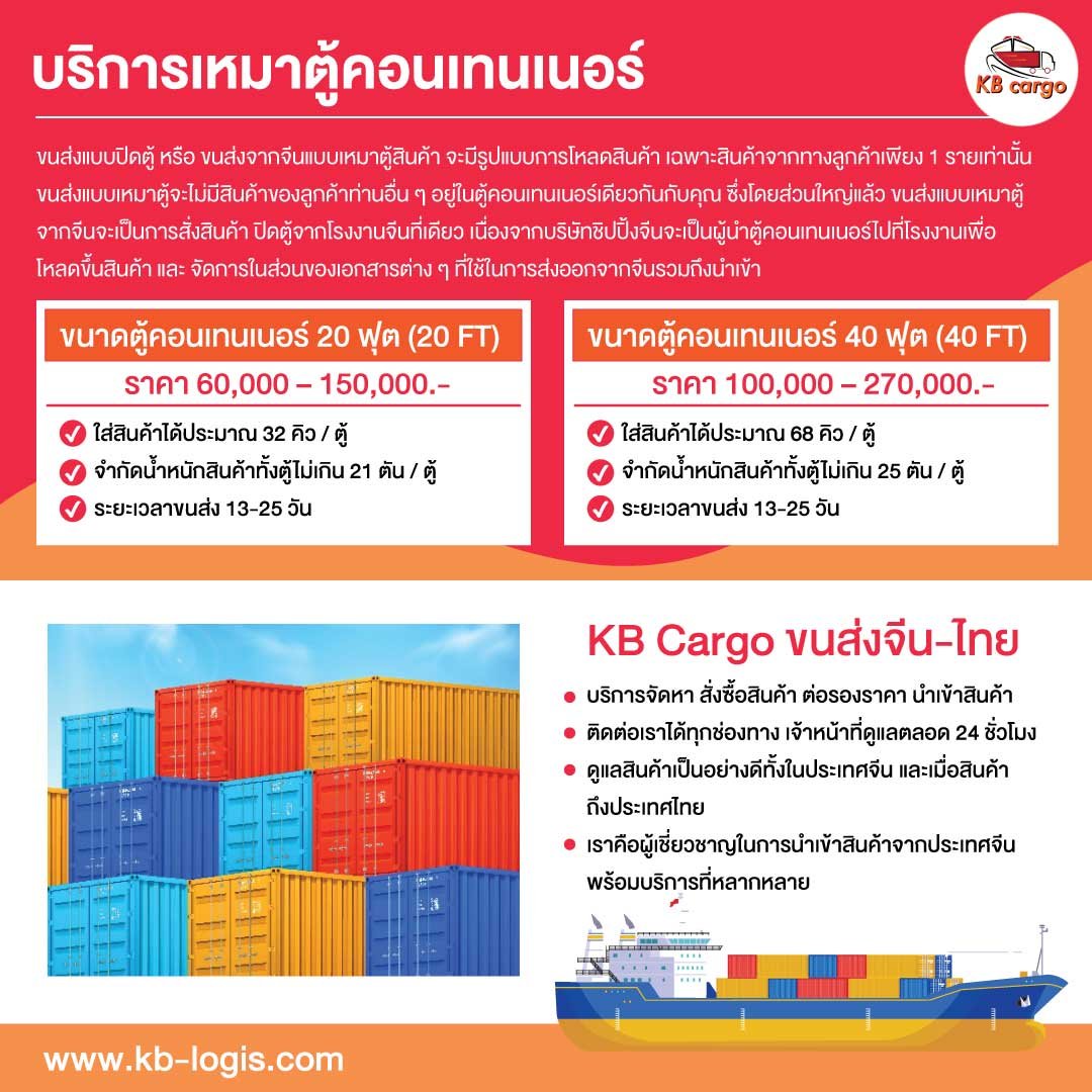 จำกัดน้ำหนักสินค้าทั้งตู้ไม่เกิน 25 ตัน / ตู้ |